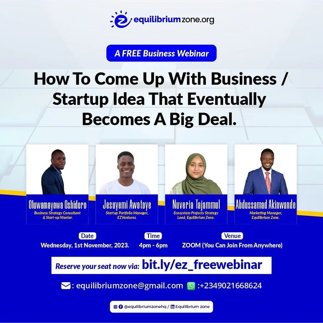 The Webinar is where you get to hear from our industry experts like Oluwamayowa Oshidero, Jesuyemi Awotoye, Nuveria Tajammul on how to navigate the developing, structuring and implementing stages of your idea.